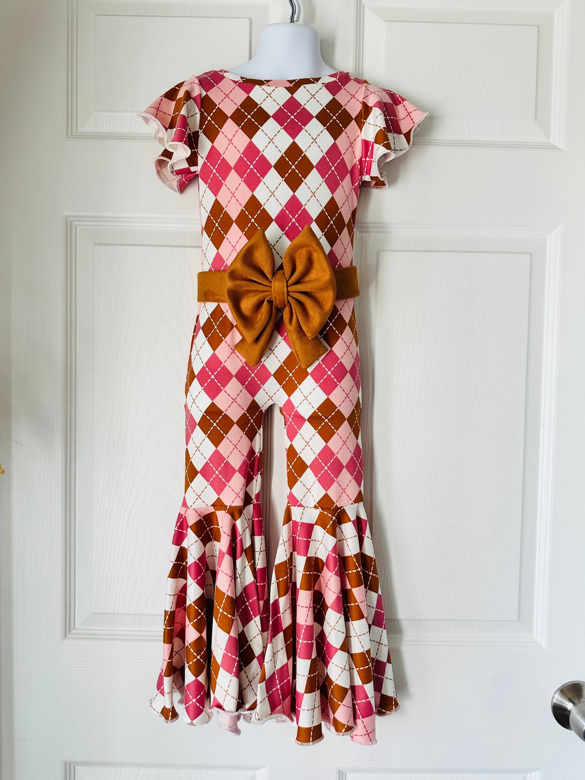 Easter/Spring Jumpsuit+Bow Belt|Flare Bell Jumpsuit|One Shoulder Jumpsuit|Girl birthday outfit|Easter Outfit|Spring/Summer Wholesome GoodsCo