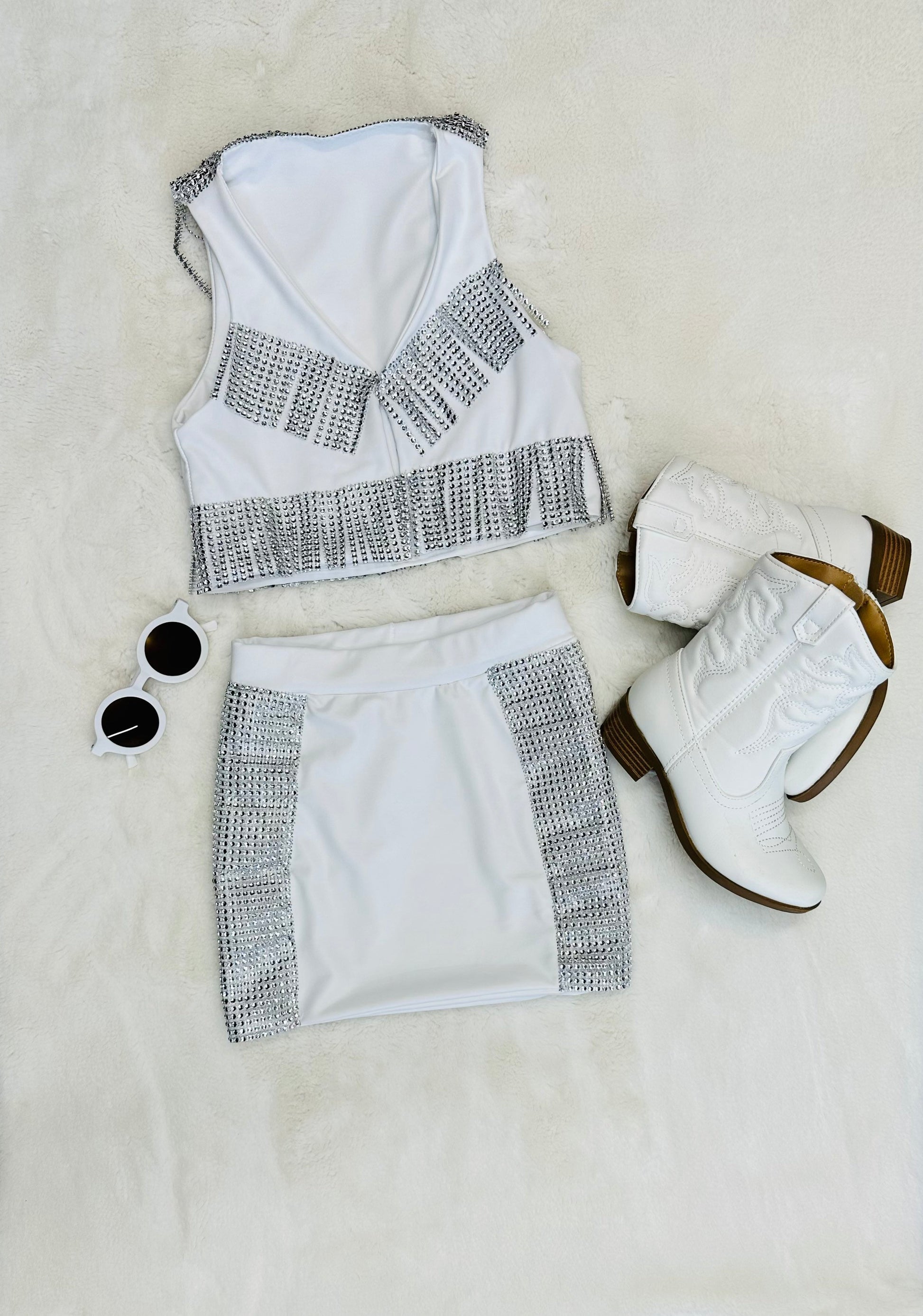 Miranda Bedazzled Cowgirl Vest|Bedazzled Pleather Skirt|Western Skirt|Western Fringe Vest|Dance Costumes|Pageant Clothes|Rodeo Outfit