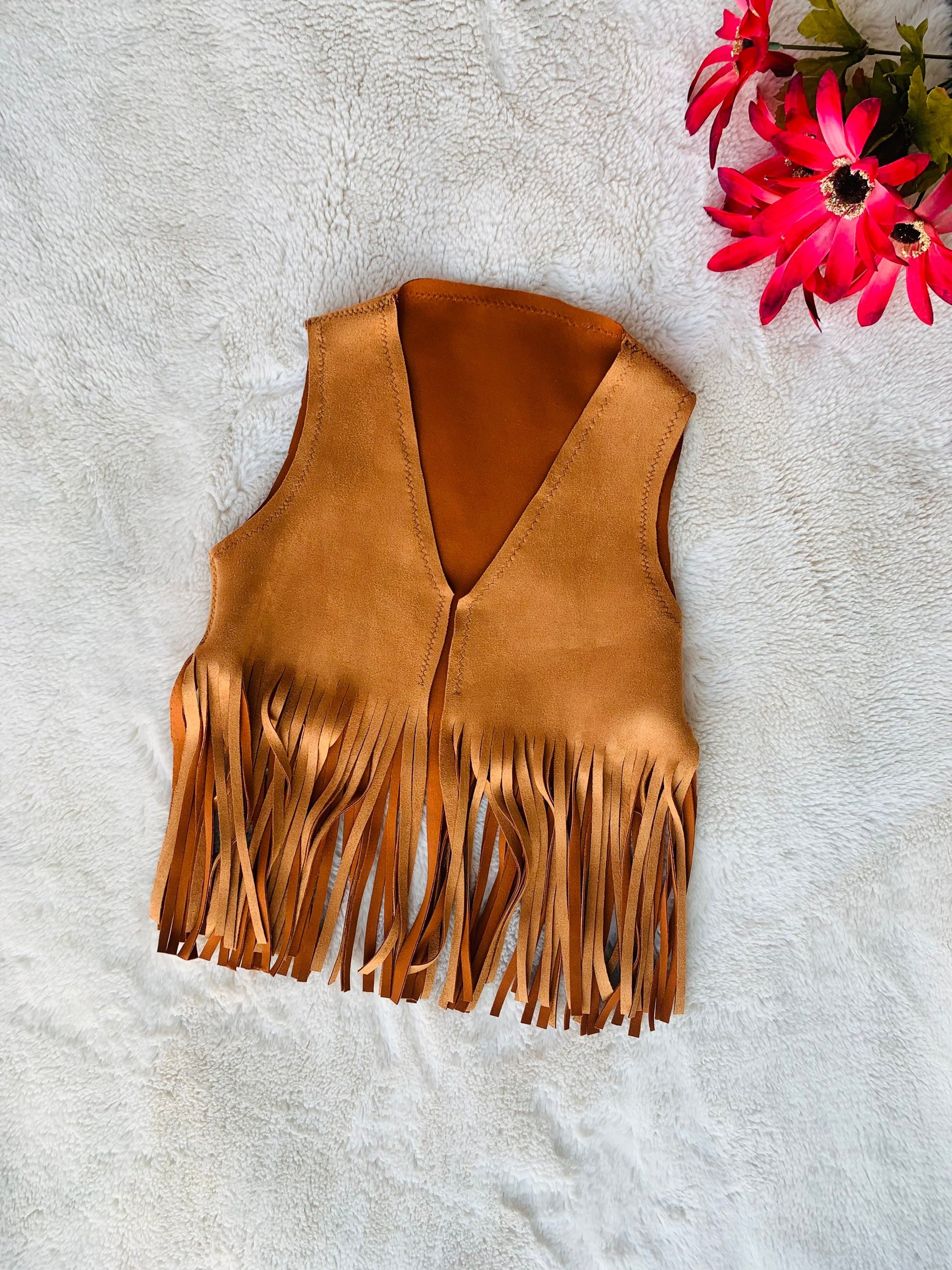 Super Fun Kids Long Fringe Vest! Available in vegan suede or vegan leather. More colors are also available!